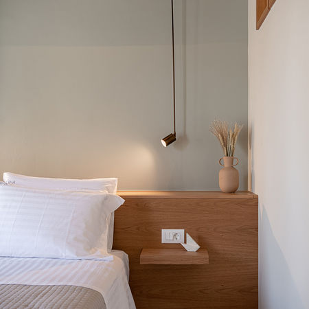 We have renovated the 1900’s house of the owner’s grandmother into two individual lofts in a historical coastal area of Chania. A house with sentimental value, in which the aim was to preserve respectfully the aristocratic atmosphere of the times in a contemporary language. The architect created new open airy staircase in each apartment in order to bring functionality and light in the ground floor. The ground level is constitute of the common area, open kitchen and the addition of a bathroom. Upper level is designed to be an open bedroom, with an exposed sink, giving the feeling of fluidity and continuity. The existing floors were replaced by metallic, the plaster inside was removed to expose the original stone walls and the old wooden windows were replaced by aluminum replicas. Vermeer’s paintings were grandma’s favorite. Tiles were Old wooden chests that were found inside the property were transformed into tables and storage units, as well as other historical objects that were used to underline the importance of memory revival and new beginnings...